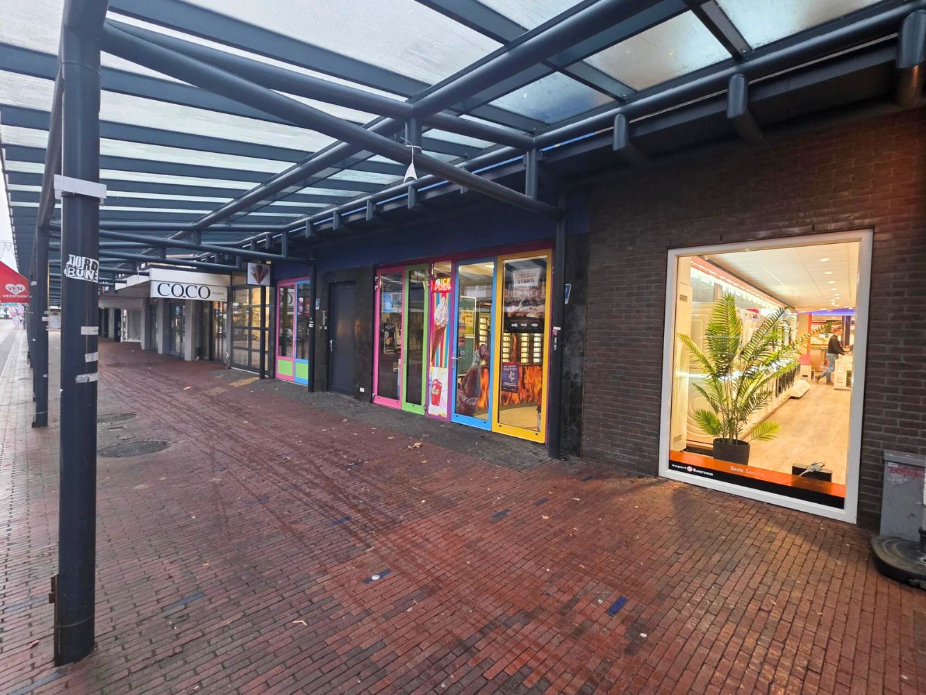Kerkstraat 47 & 47a, 9641 AM Veendam — een goed zichtbare locatie in het centrum van Veendam met veel passantenverkeer en diverse horecagelegenheden in de directe omgeving. De Kerkstraat is een levendige, grotendeels overdekte winkelstraat met veel voetgangersverkeer en een mix van winkels, horeca en voorzieningen. Dit zorgt voor een brede aantrekkingskracht en is ideaal voor zowel lunch- en avondomzet als impulsaankopen.