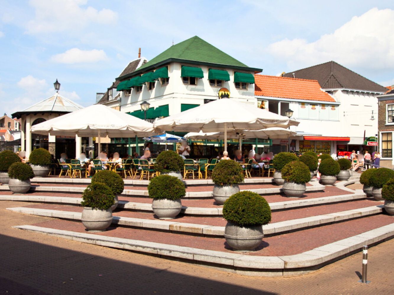 Midden in het centrum, in een prachtig gebouw, ligt een uniek horecaconcept met een terras van ca. 155 m². Vanaf hier geniet je van een weids uitzicht over de winkelstraat, het water en het oude gemeentehuis.